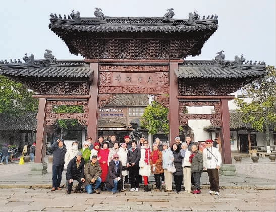 这是老舞蹈家们组织的“欢乐群”。不久,他们转移阵地,到苏州西山、绍兴、无锡、余姚等地去旅行,人也越来越多,到现在已有六十多人,成了大型旅行团。人员不仅是芭蕾舞团的人,还有上海歌舞团、上海歌剧院的伙伴,而且一年中有12次出去旅行。为什么叫“欢乐群”呢?周慧芬同学说得好:“大家年龄都大了,相聚开心。”实际上是个校友群。