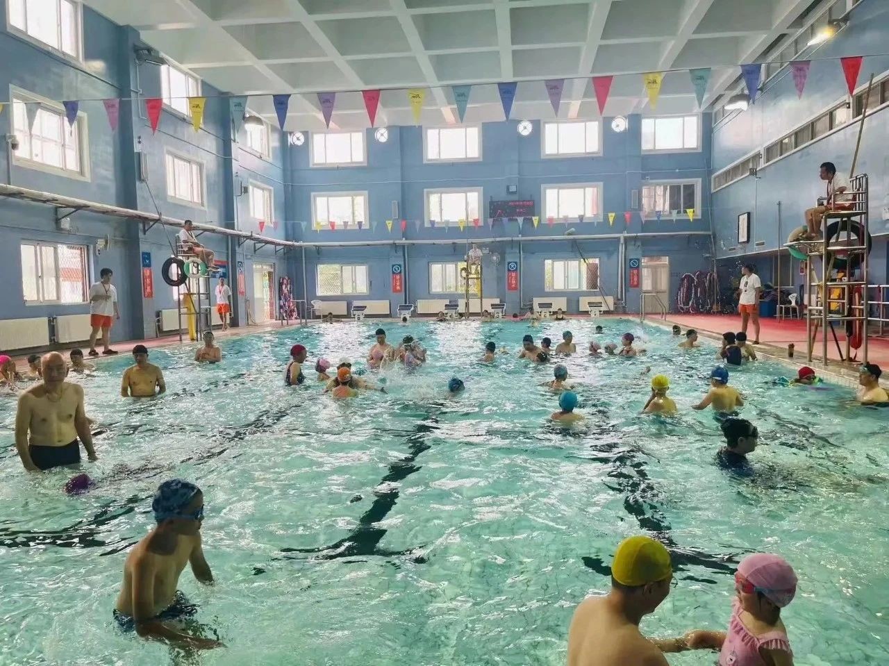 在长宁温水游泳池和林百欣游泳馆内,随处可见亲子家庭组合,大小泳客们尽情地变换着各种泳姿畅游。