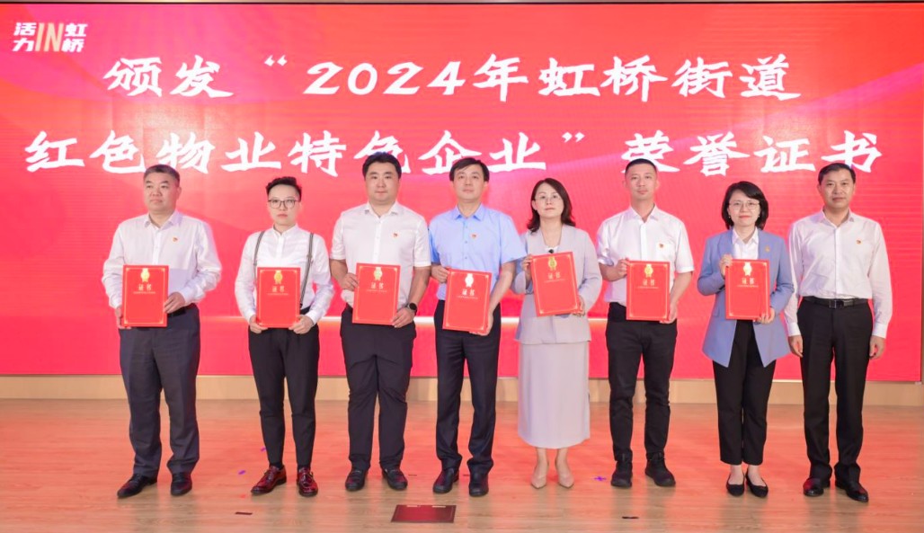 为进一步深化党建引领物业治理成效,虹桥街道党工委牵头辖区物业打造红色阵地、践行惠民行动,为群众送去“摸得着”的便民利民措施和“家门口”的沉浸式惠民体验。经前期宣传发动、申报推荐和评选公示,七家单位现场被授予“2024年虹桥街道红色物业特色企业”荣誉称号。