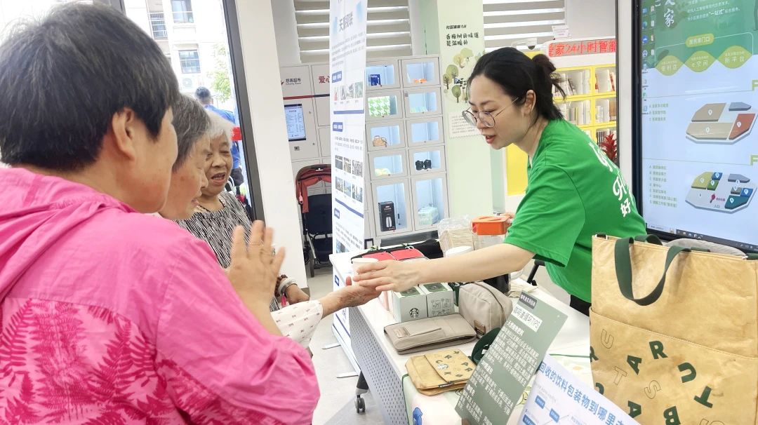 来自新锦华的员工现场开展“沪尚回收”可回收物现场回收,指导居民注册使用“沪尚回收”服务小程序,小区居民纷纷拿着各类可回收物进行交投。辖区内的星巴克北新泾店积极参与活动,免费供应咖啡渣,向居民宣导可持续生活的小妙招。