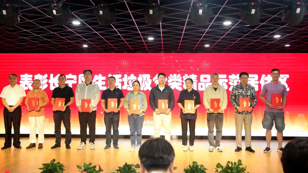 为表彰先进,树立榜样,用先进典型示范带动生活垃圾管理工作发展,活动当天,区绿化市容局表彰“长宁区生活垃圾分类精品示范居住区”,来自10个街道(镇)的居民区代表上台领奖。