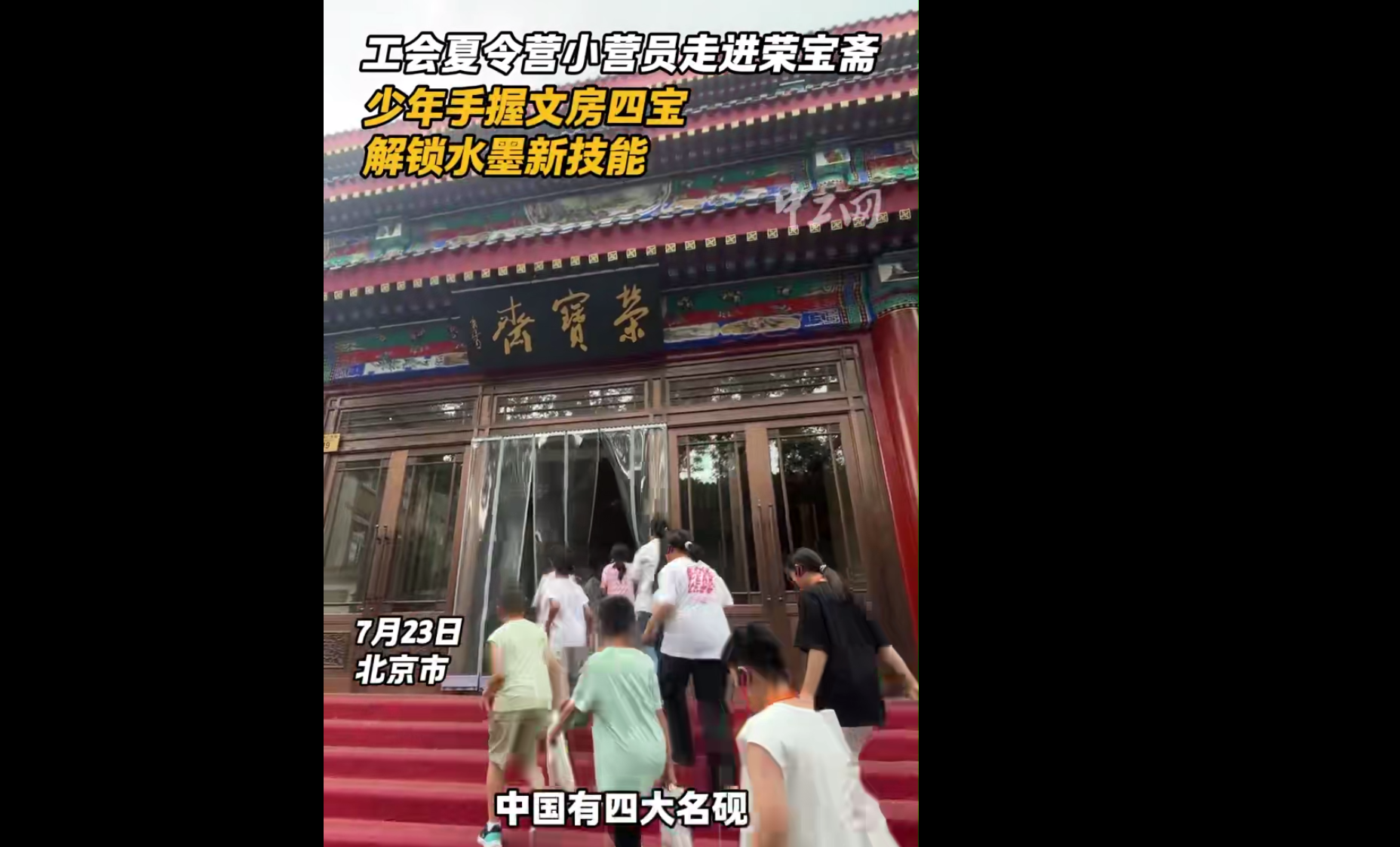 Hi,北京|工会夏令营小营员走进荣宝斋:少年手握文房四宝,解锁水墨新技