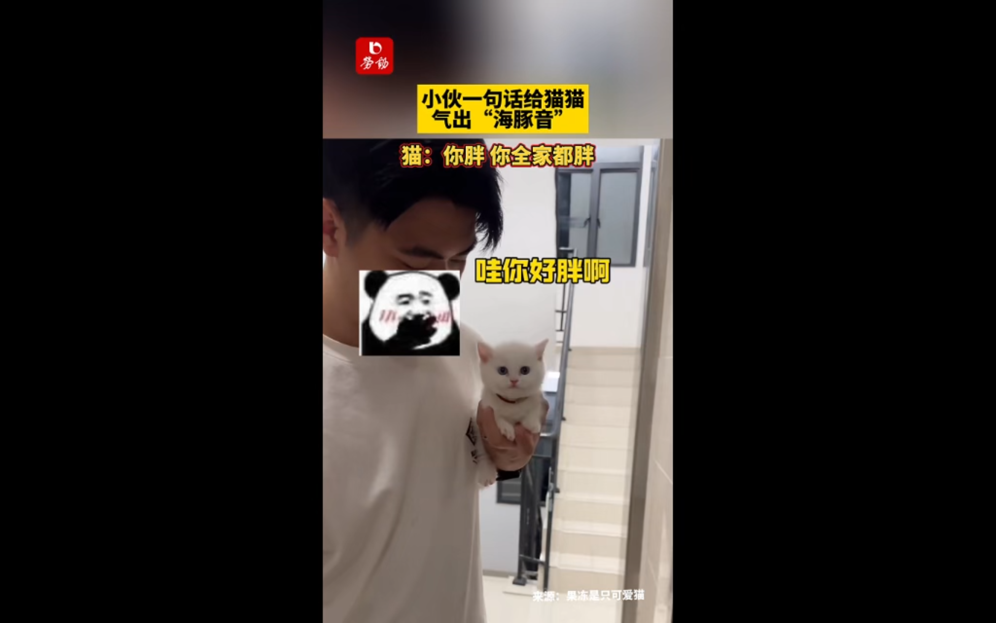 小伙一句话给猫猫气出“海豚音”。 猫:你胖,你全家都胖。