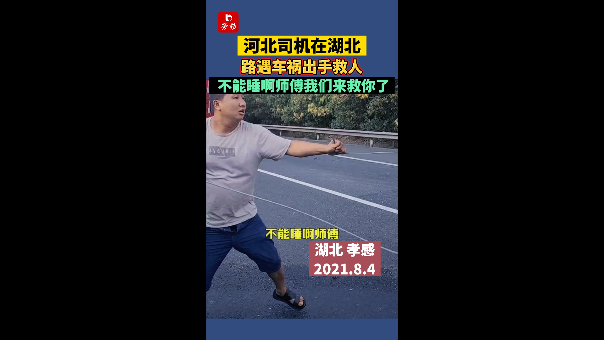 摘要: 河北司机在湖北,路遇车祸出手救人:“不能睡啊师傅,我们来救你了!”