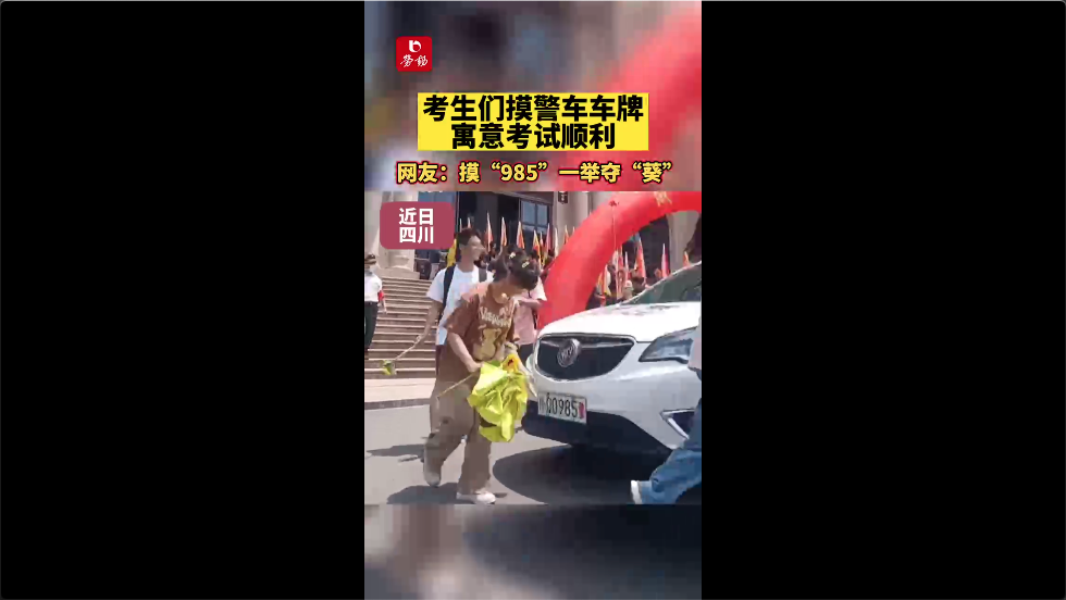 考生们摸警车车牌寓意考试顺利,摸“985”一举夺“葵”