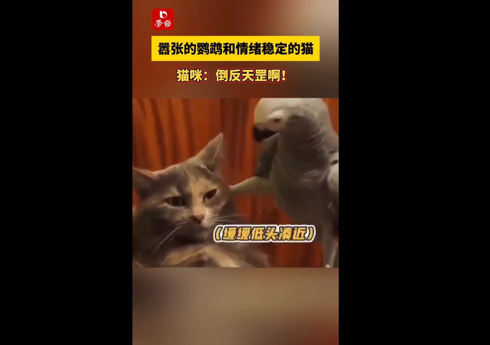 嚣张的鹦鹉和情绪稳定的猫,猫咪:倒反天罡啊!