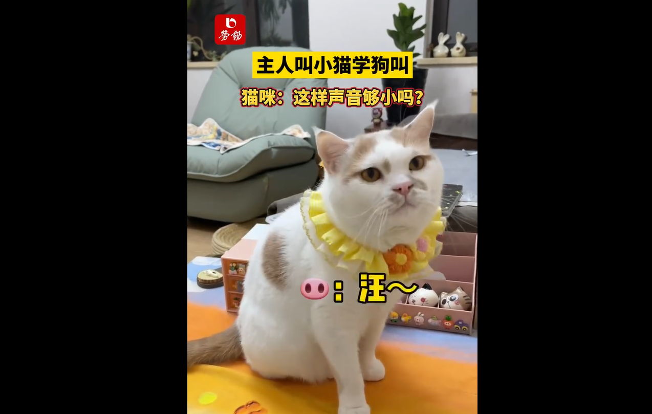 主人叫小猫学狗叫,猫咪:这样声音够小吗?