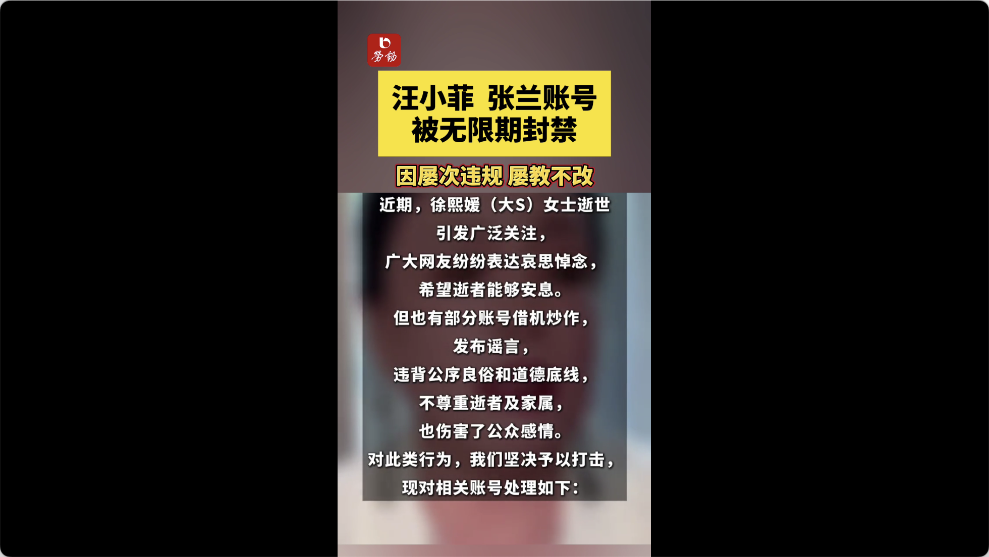 汪小菲、张兰账号被无限期封禁,因屡次违规,屡教不改