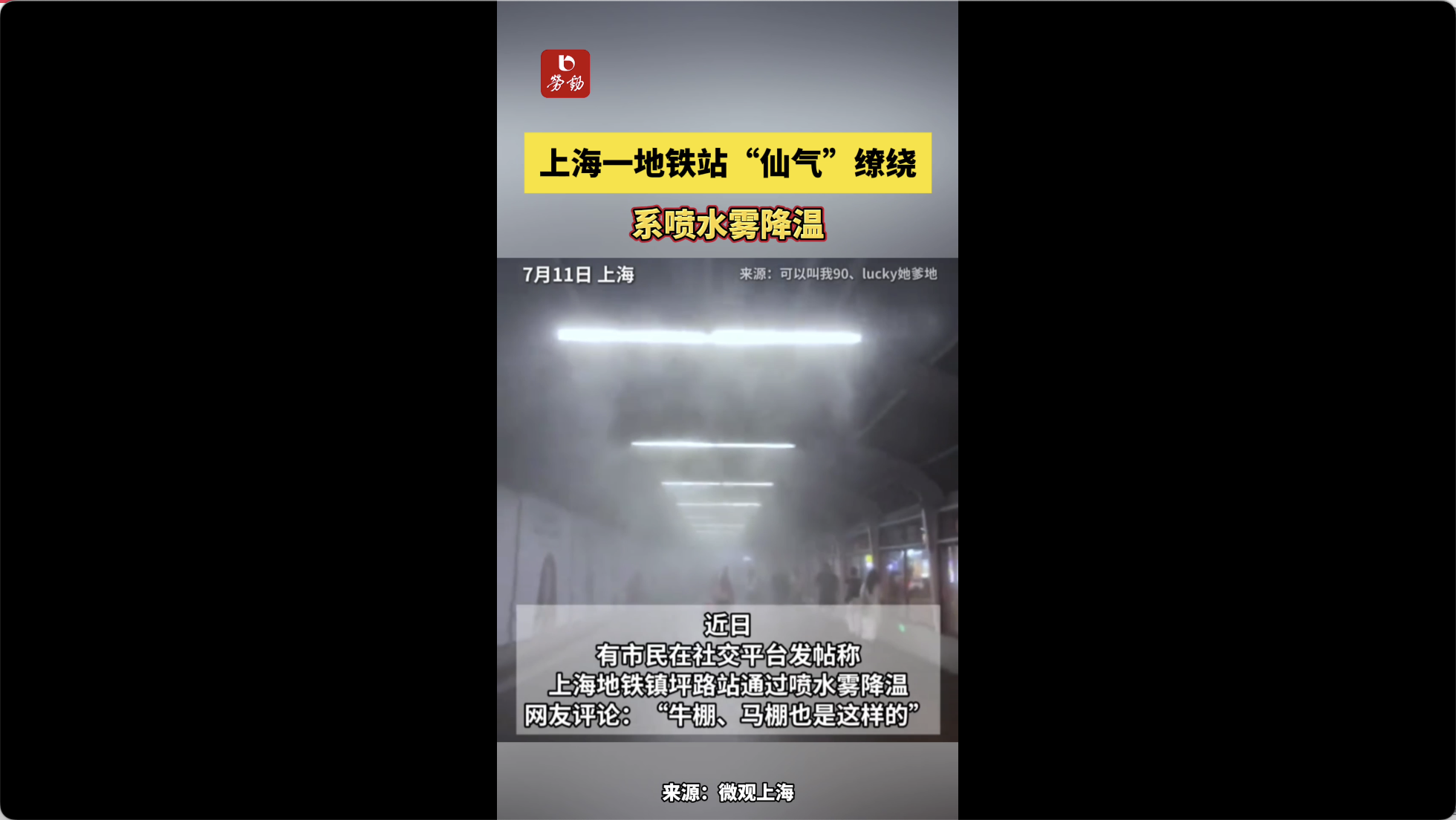 上海一地铁站“仙气”缭绕,系喷水雾降温
