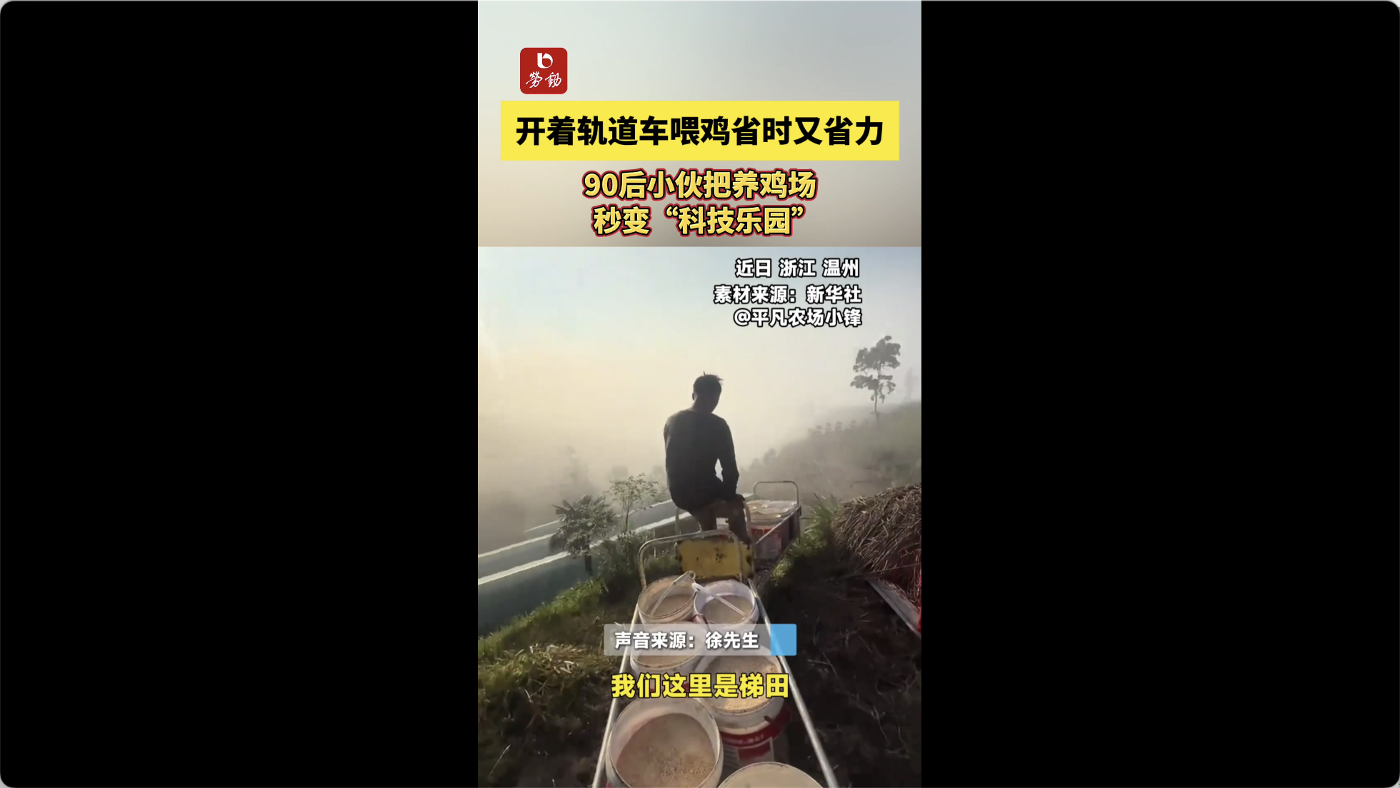 开着轨道车喂鸡省时又省力!90后小伙把养鸡场秒变“科技乐园”