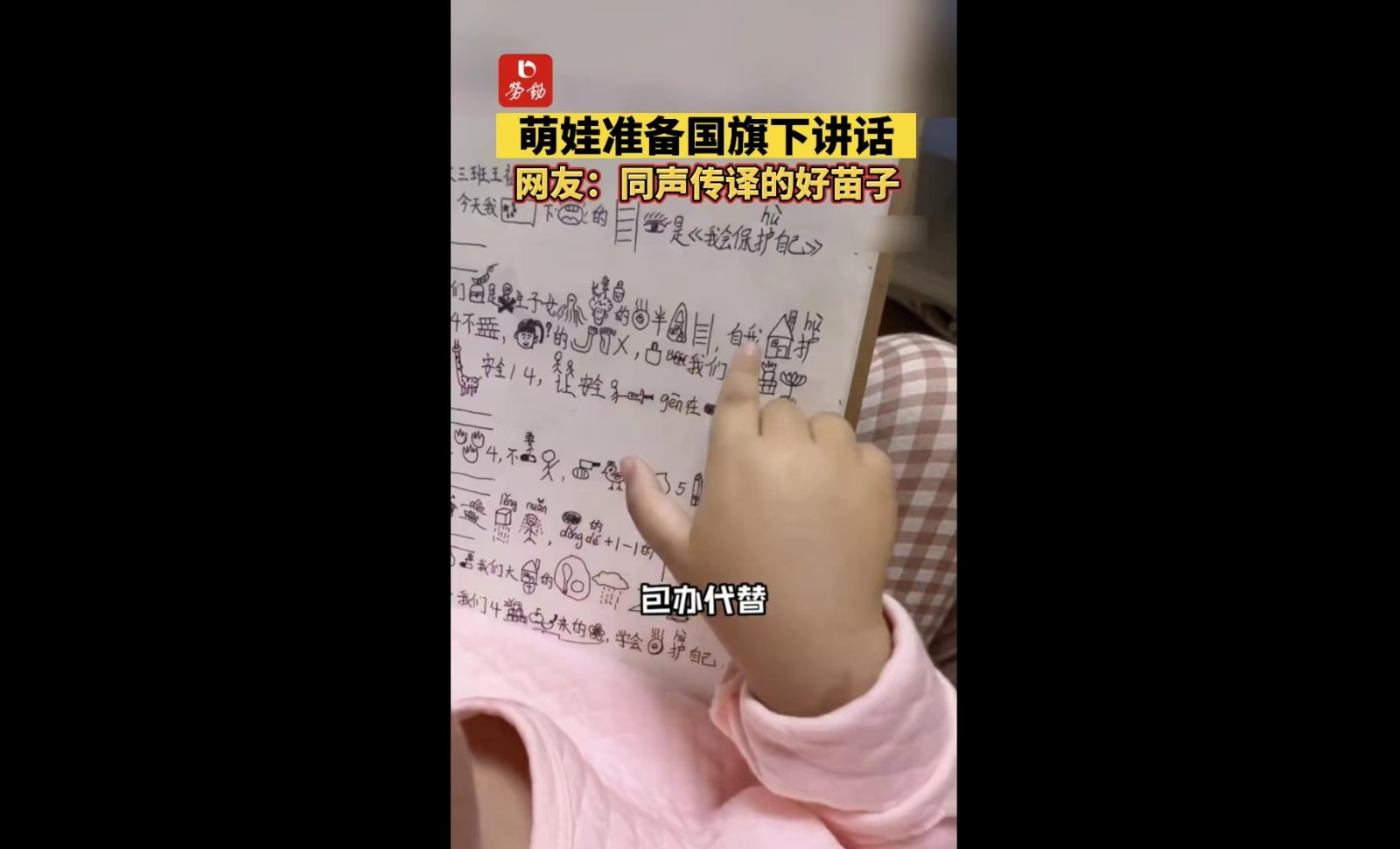 萌娃准备国旗下讲话,网友:同声传译的好苗子