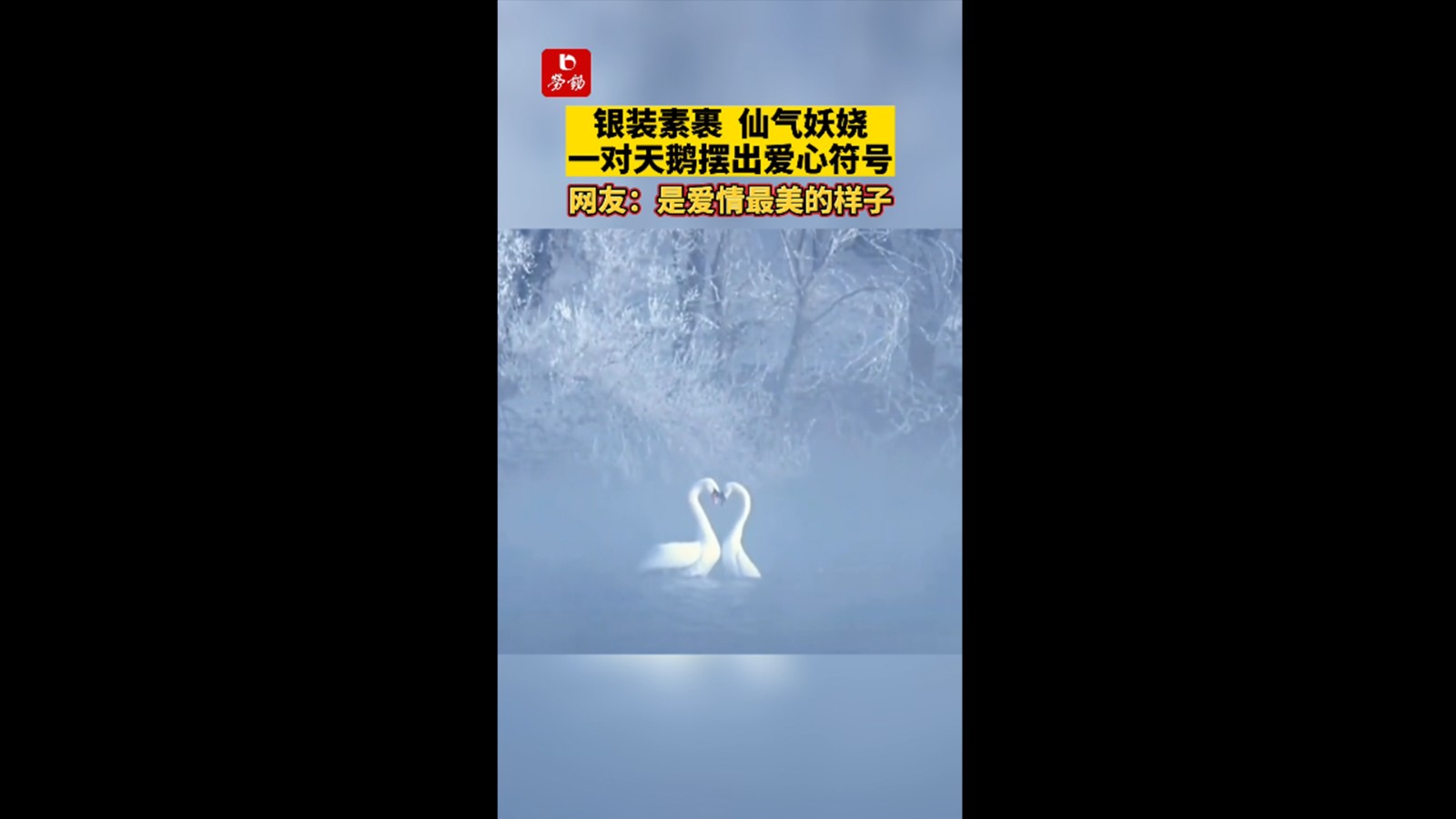 银装素裹、仙气妖娆,一对天鹅摆出爱心符号,网友:是爱情最美的样子