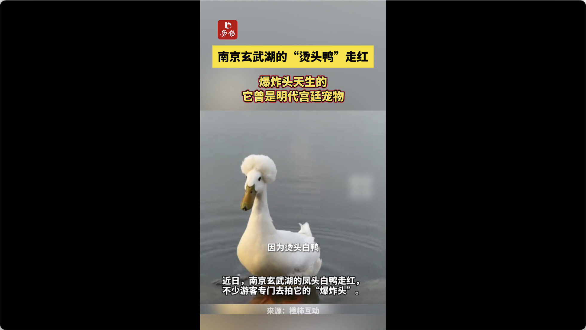 南京玄武湖的“烫头鸭”走红,爆炸头天生的,它曾是明代宫廷宠物