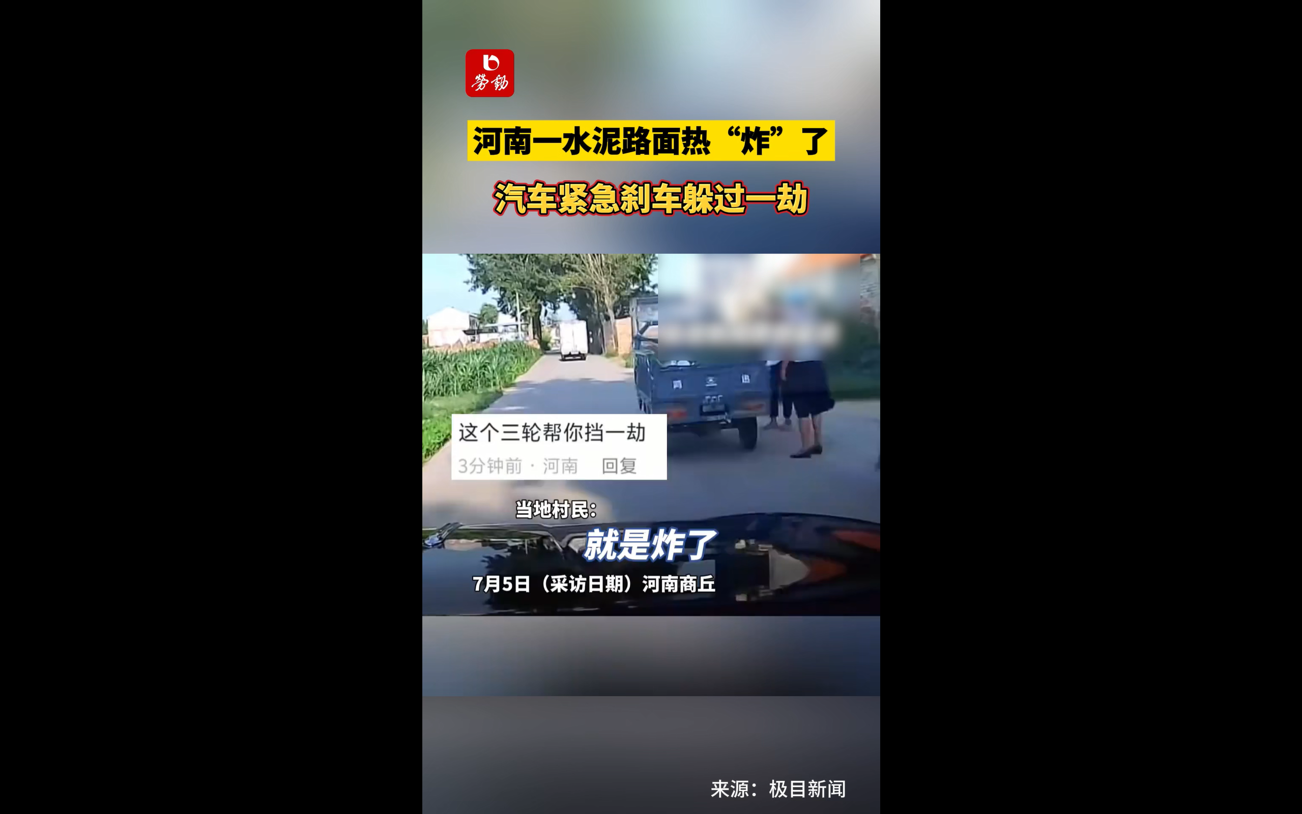 河南一水泥路面热“炸”了,汽车紧急刹车躲过一劫