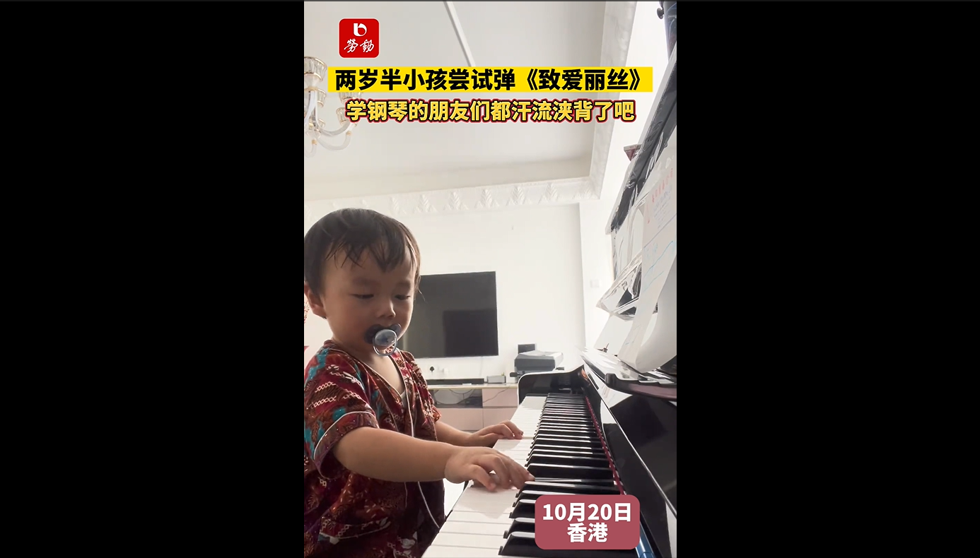 两岁半小孩尝试弹《致爱丽丝》,学钢琴的朋友们都汗流浃背了吧
