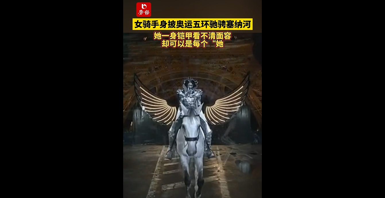 女骑手身披奥运五环驰骋塞纳河,她一身铠甲看不清面容,却可以是每个“她”