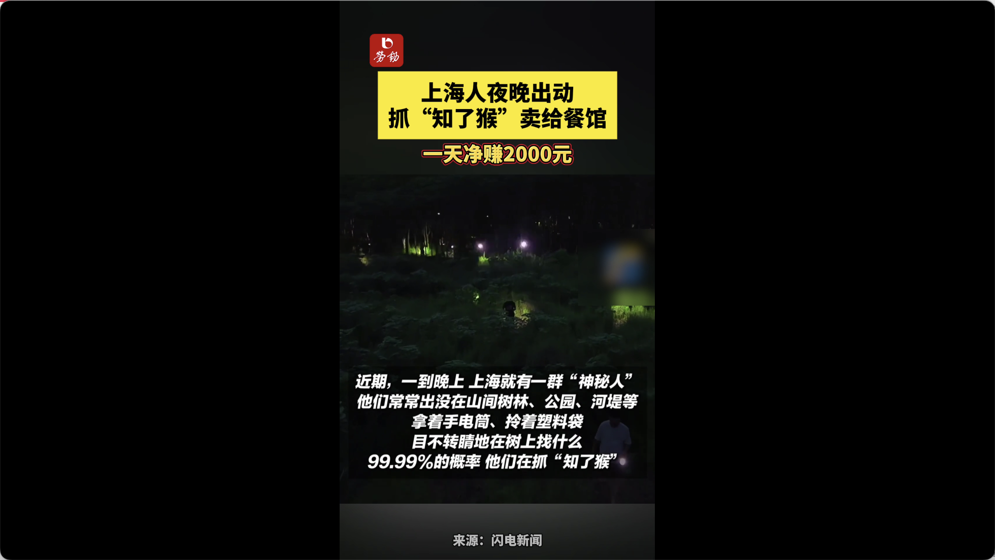 上海人夜晚出动抓“知了猴”卖给餐馆,一天净赚2000元