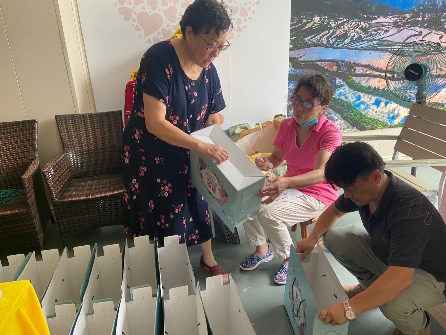 一进门,就看到沈翠英与门店工作人员忙着给一家企业购买的消暑产品装箱,地上整齐摆放了几十个空纸箱。虽然开着电扇,但三人早已满头大汗,却忙地不亦乐乎。