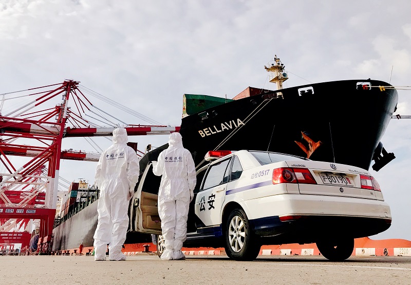 为兼顾疫情防控和展品顺利入境参展,外高桥边检站利用船讯信息网提前了解“澳航贝尔威亚”轮入境前30天轨迹,掌握船舶在各港口经停情况和展品起运情况,并要求代理申报全船船员身份资料、登船时间、地点、身体状况等信息数据,预判涉疫风险。
