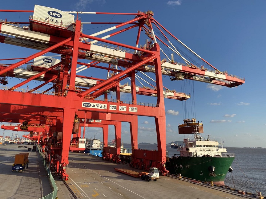 上港集团副总裁方怀瑾介绍,集团顺应市场变化趋势,推出多项有效举措促进箱量增长,累加效应显现。