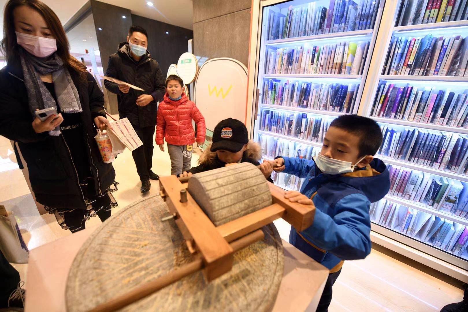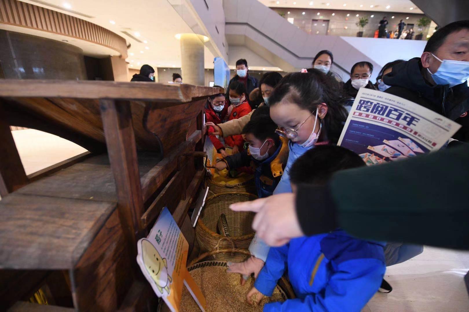 多个特色展区分置在大厅中轴左右。读者在设于党建服务中心的“初心之旅”,读者可学习“四史”;在设于新时代文明实践中心的“文明约见”,可留下文明感言;走进“一粒米的奇幻旅程”,徜徉图书馆里的稻田,在全面建成小康社会的当下,感受每一粒盘中餐背后的稼穑之艰难;而在“百年档案”与“先锋物语”,重温先辈们的奋斗历程……在一层上完成七个打卡点的打卡、参与答题后集齐徽章,即可在兑奖处兑换抽奖券,前往抽奖区抽奖。
