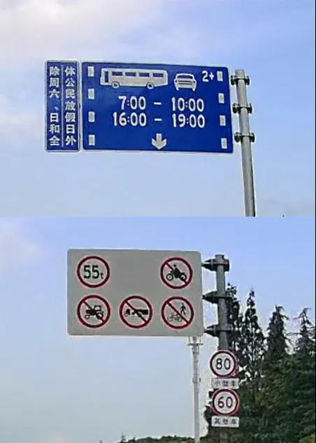 公交车以及坐有两个或两个以上乘员的合乘车(客车、私家车)可全天通行。7:00—10:00,16:00—19:00时段内,单人驾驶车辆不得使用该车道(周六、周日及法定节假日除外)。