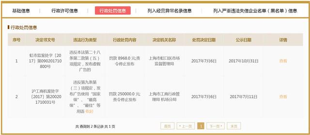 需要一提的是,上海学而思已不是首次被罚。国家企业信用信息公示系统显示,2017年7月,上海学而思因发布广告使用“国家级”“最高级”“最佳”等用语被罚25万;同一时期,上海学而思因发布虚假广告被罚8968元。