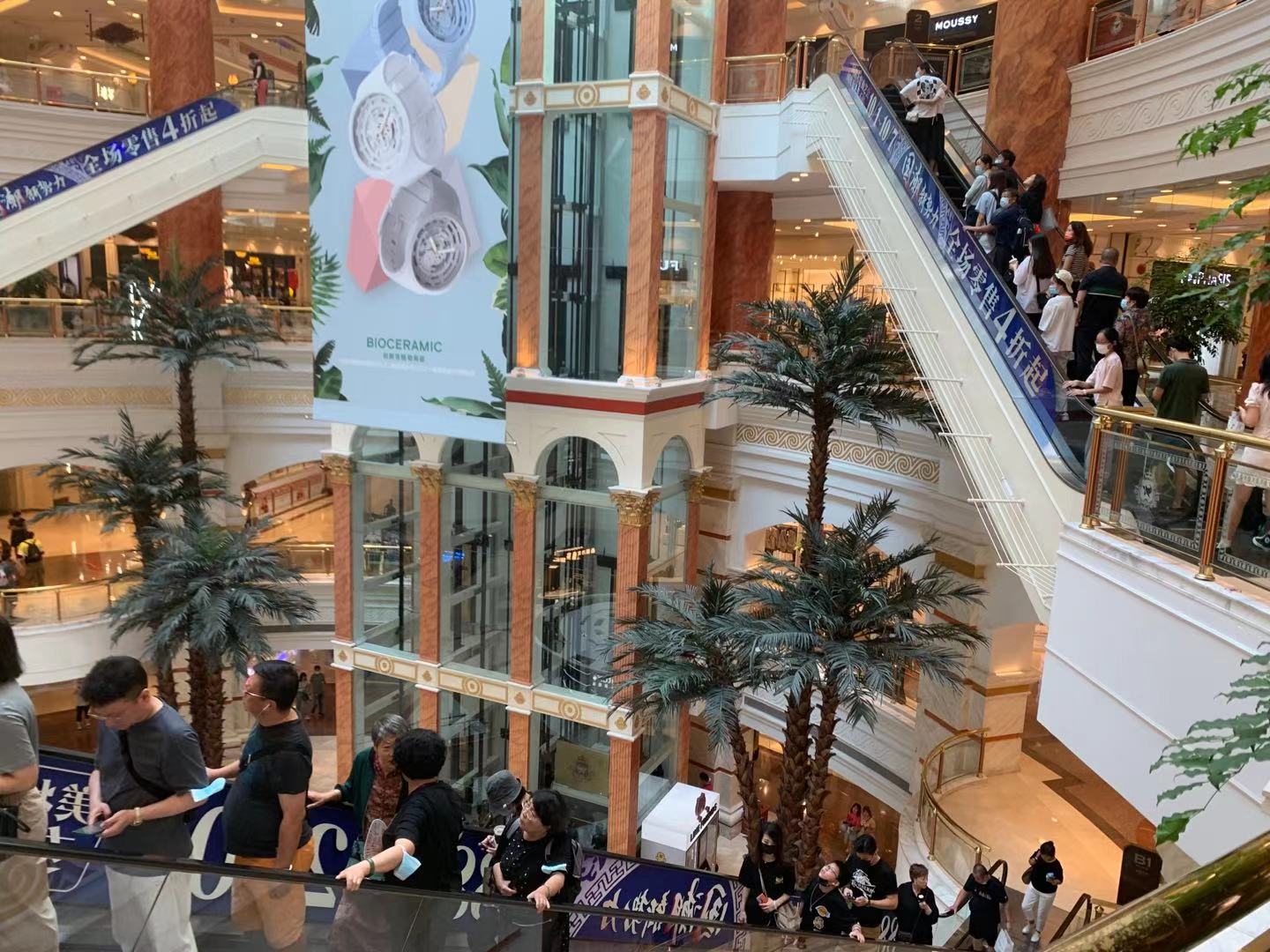 国庆长假期间,由于国内疫情形式持续平稳,加之天气情况总体较好,市民出游购物的兴致高涨。10月2日,劳动报记者了解到,国庆长假前两日,位于普陀区的环球港连续迎来客流高峰,前两日客流均突破8万人,高峰时段客容量达4.1万。