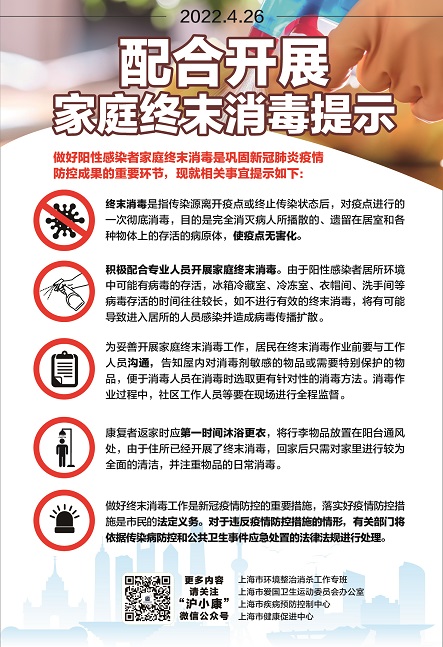 5、做好终末消毒工作是新冠疫情防控的重要措施,落实好疫情防控措施是市民的法定义务。对于违反疫情防控措施的情形,有关部门将依据传染病防控和公共卫生事件应急处置的法律法规进行处理。
