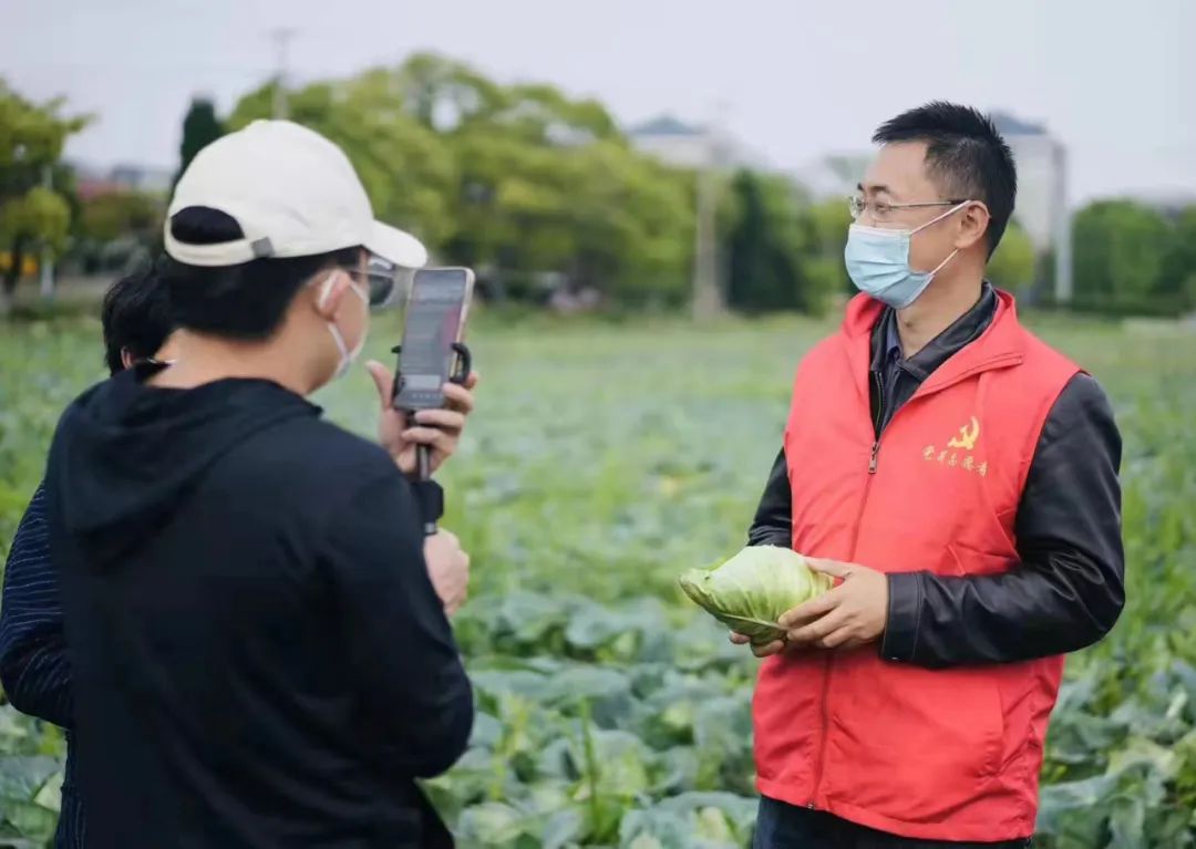 刚刚过去的“五一”节,在浦东宣桥村农户种植的100亩牛心菜菜地里,潘达开始直播带货,帮助村民因疫情封控滞留在田地里的20万斤牛心菜能迅速打开销路。镜头前,他侃侃而谈牛心菜的来历、牛心菜的营养故事,直播刚开始10分钟,就接到订单500多份,潘达开心地笑了。