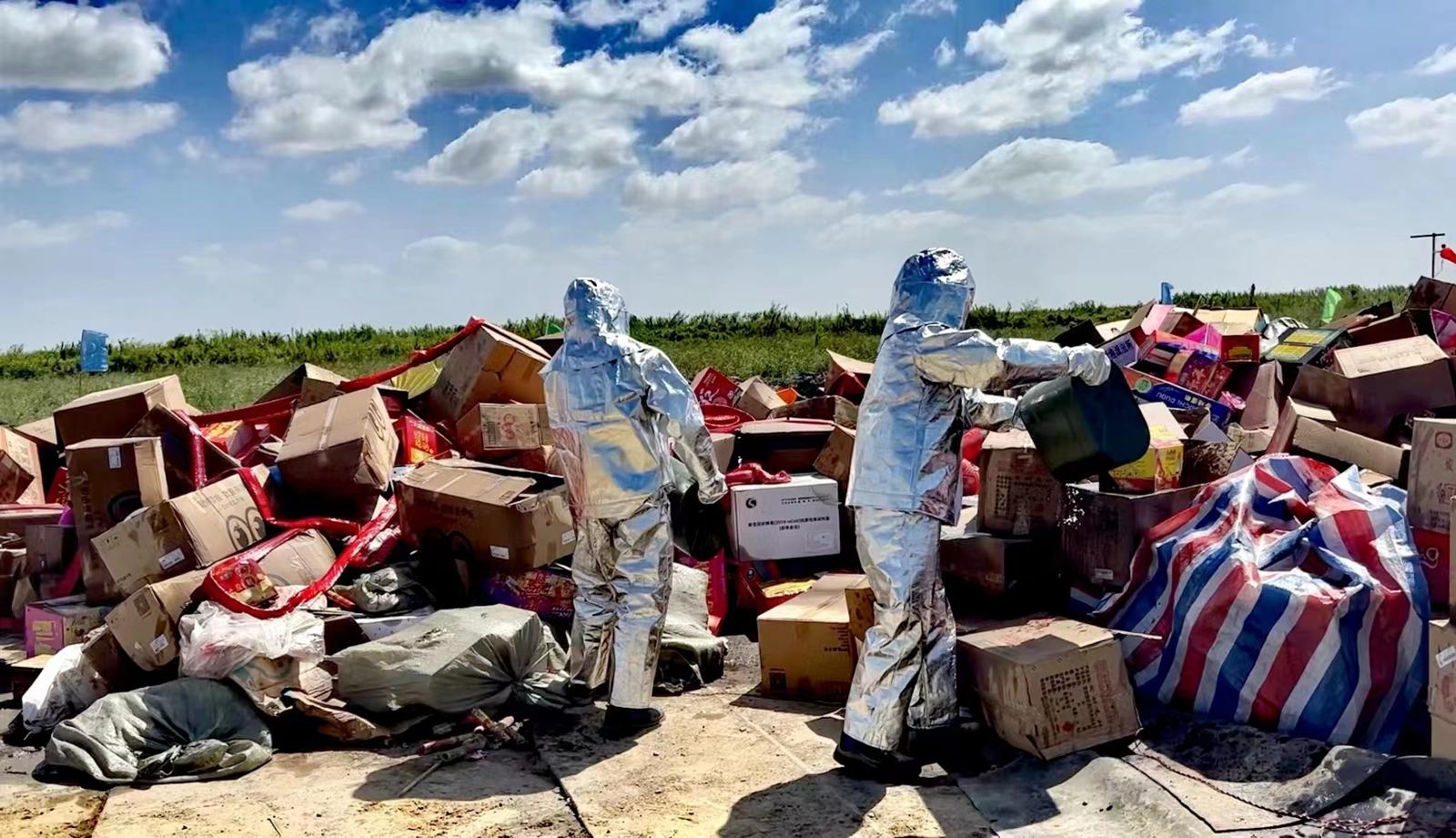 9月19日上午,上海警方会同临港新片区管委会和消防、气象等相关部门对今年以来公安机关查处收缴的4000余箱非法烟花爆竹进行了集中销毁,及时消除安全隐患。