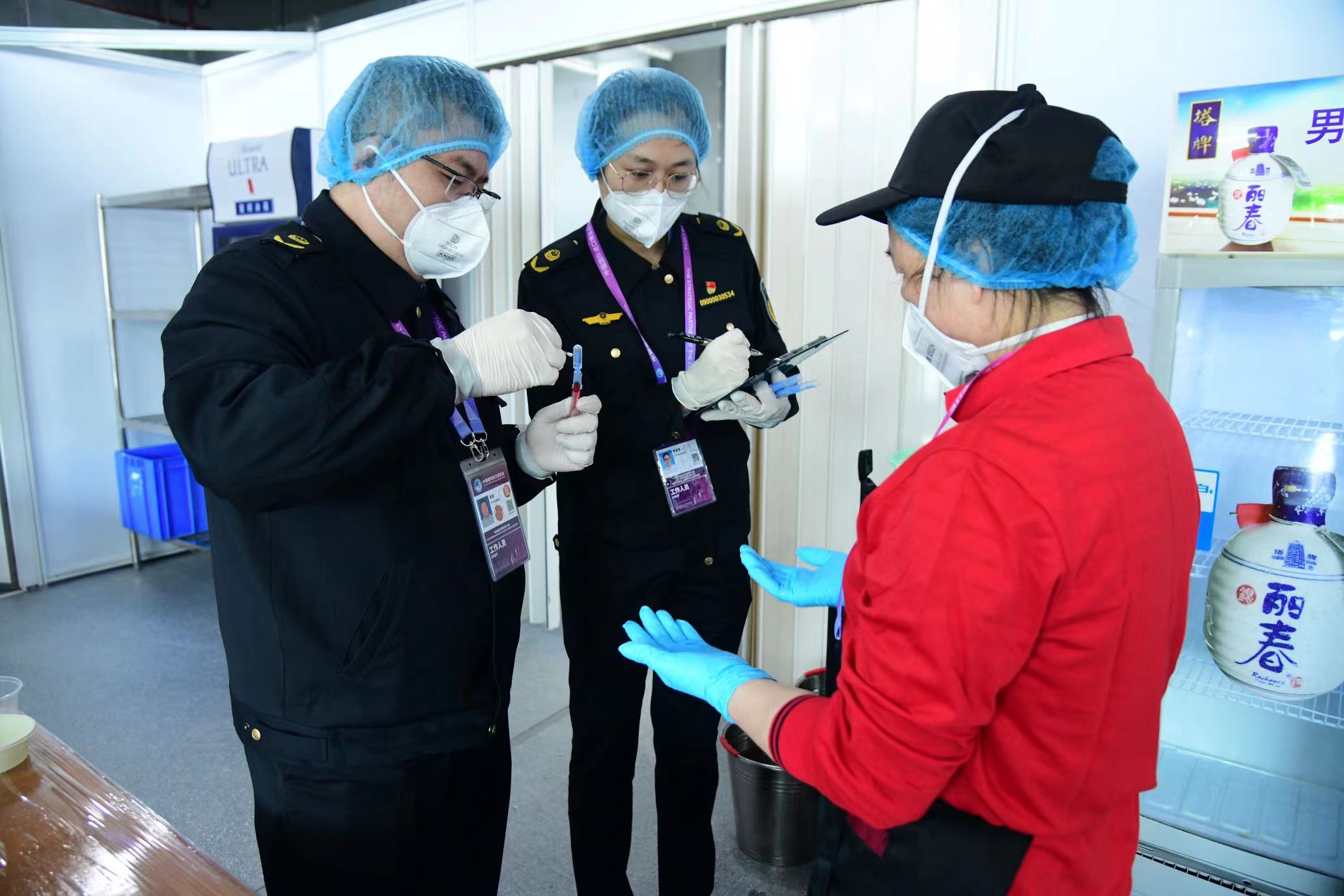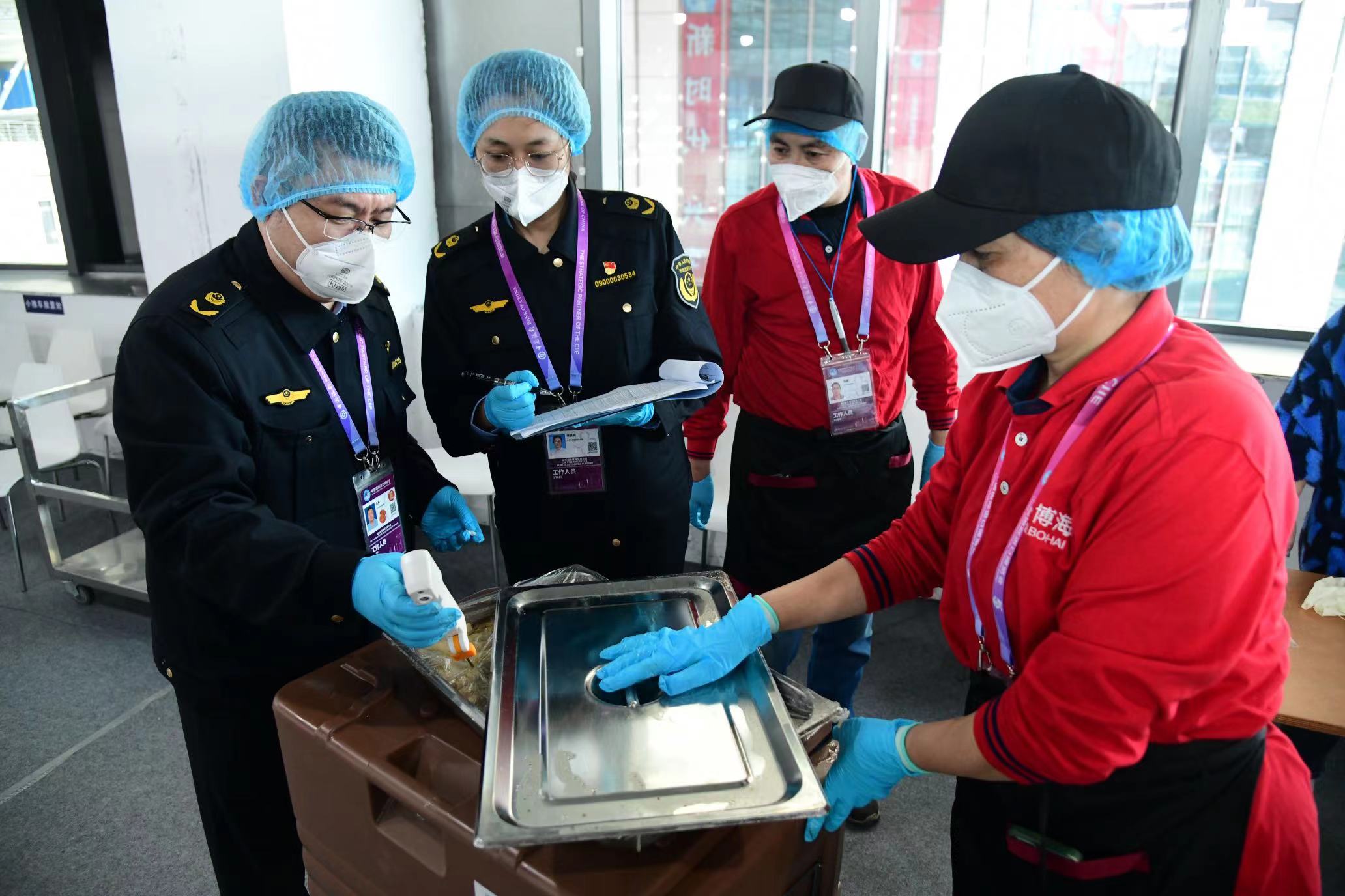 劳动报记者在现场看到,以午餐为例,荤素搭配都有若干品种,分为A、B套餐,包括水果、饮料、汤品等。针对这些特点,保障组制定工作总体方案,从环节快检、人员手部快检、车辆验收到菜品测温、餐间餐后巡查等,每个环节都有明确岗位职责分工和现场操作流程,确保每个点位都有人员保障。