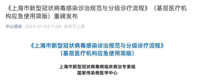 今天(1月4日),上海市新型冠状病毒病临床救治专家组、国家传染病医学中心发布《上海市新型冠状病毒感染诊治规范与分级诊疗流程》(基层医疗机构应急使用简版),一度刷屏,被奉为“最及时的基层新冠诊疗操作实用指南”。记者采访执笔专家获悉,这份2000多字的指南实则集合上海新冠医疗救治三年迎战新冠的集体智慧,并就当前分级分层保障市民医疗救治需求,尤其是基层如何应对,给予明确的实用操作提示。