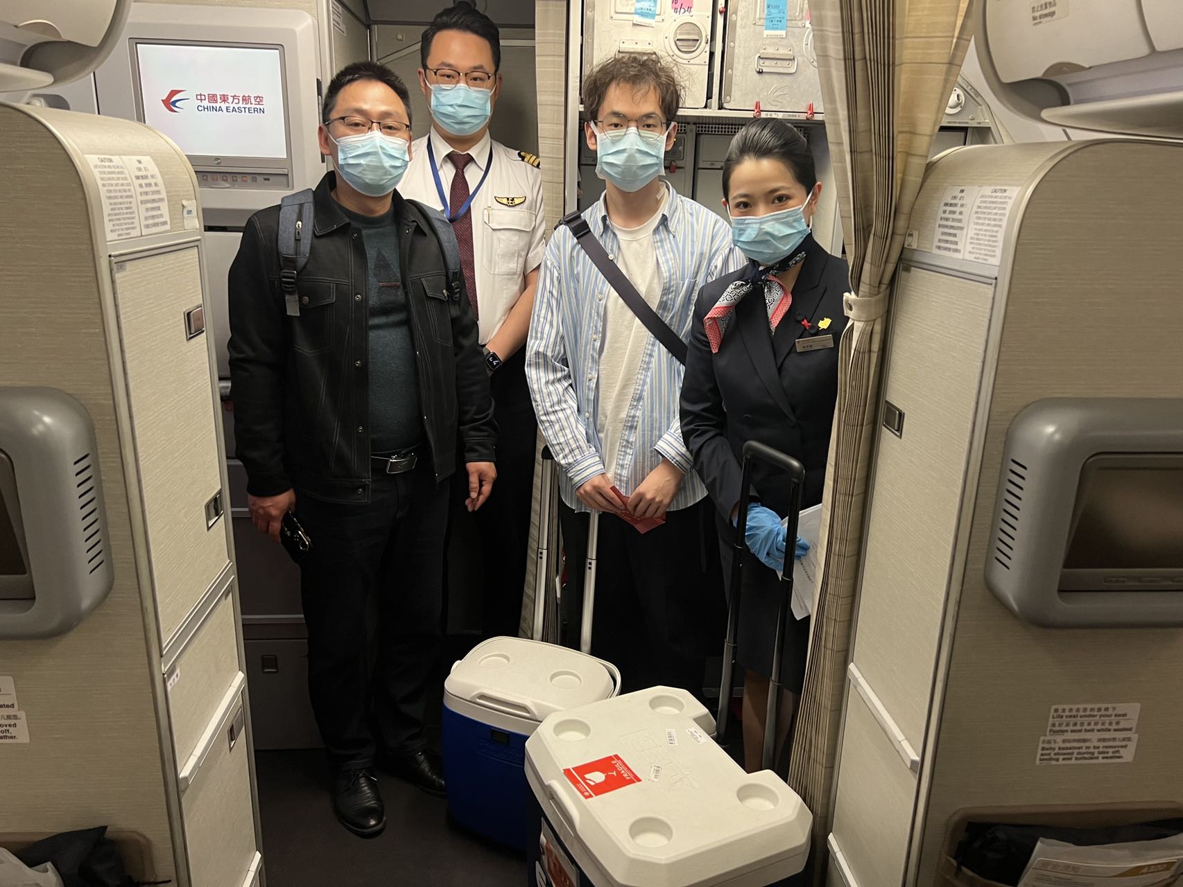 4月24日中午,在这班由广西柳州前往上海浦东的MU5204航班上,两名医生携带一例人体捐献肝脏及一例人体捐献肺脏器官,将分别送往上海第一人民医院和他们所在的无锡医院。