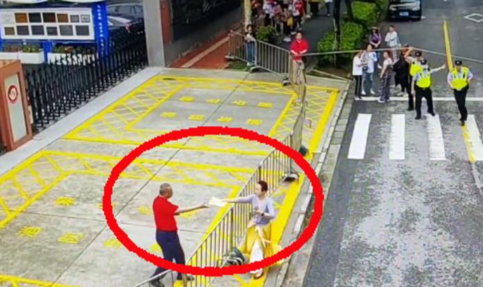 由于华理附中的考点位于在一条弄堂内,车辆无法驶入,最终,考生妈妈在辅警的护送下,一路小跑至路面,从坐在警车内的外公手中接到证件。