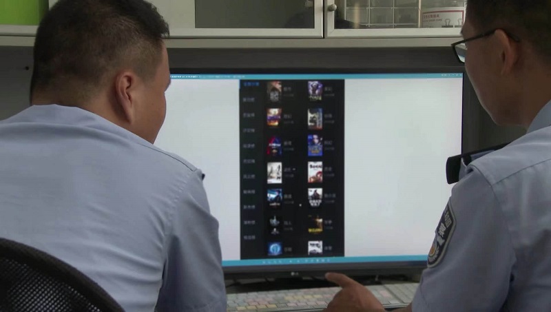 头图为民警正在核查涉案网络小说。警方供图