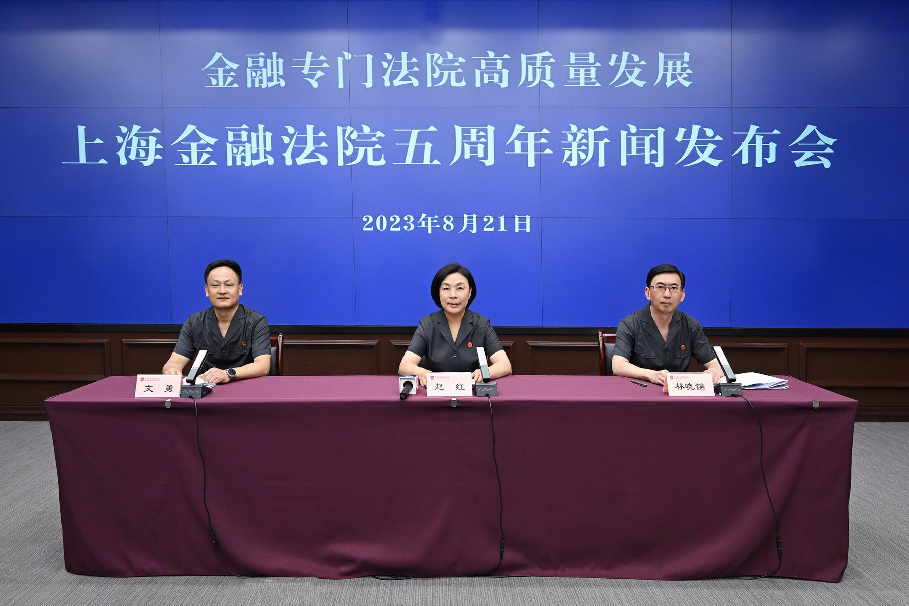 头图为上海金融法院举行五周年发布会现场。法院供图