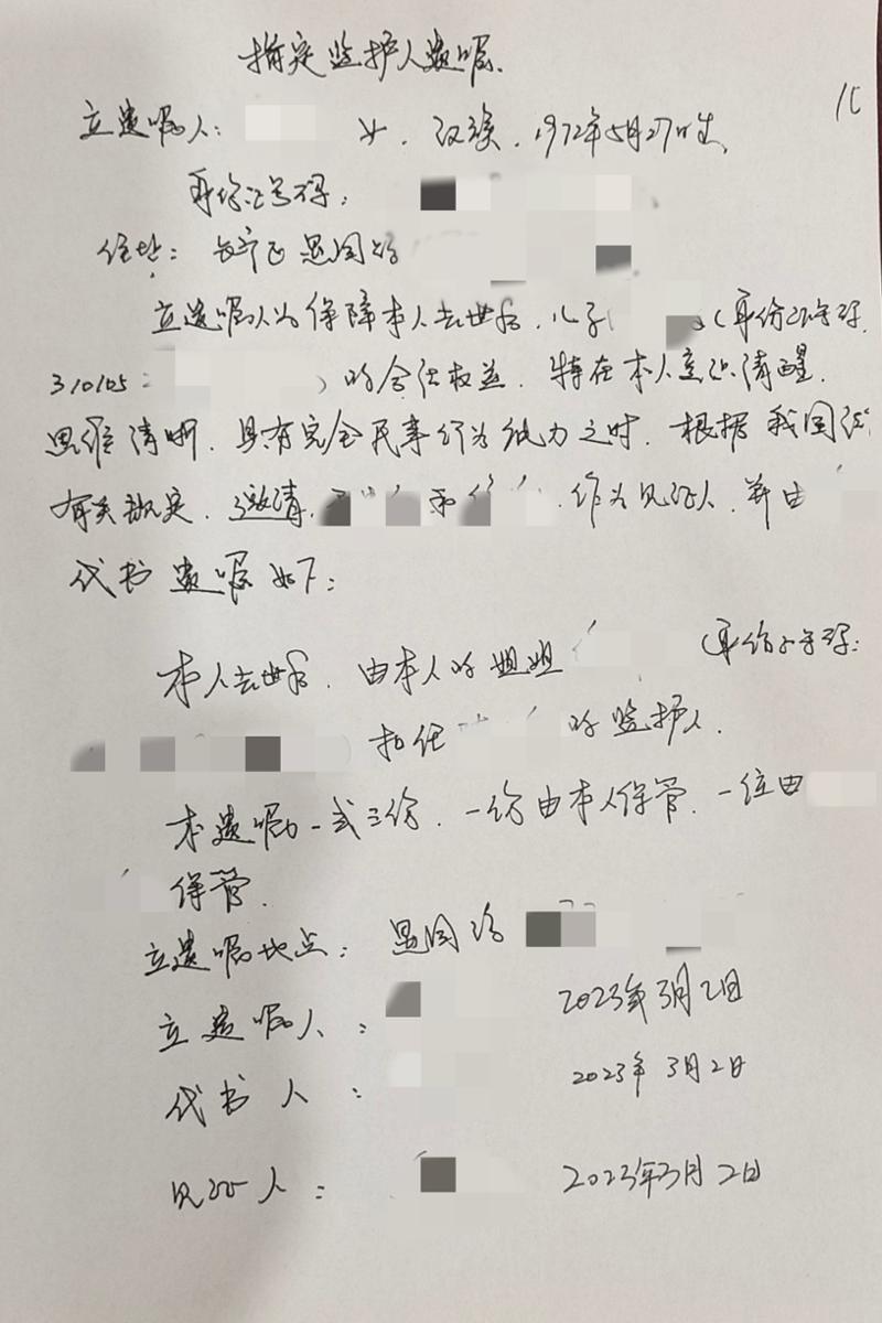 小陈母亲留下的遗嘱。长宁法院供图