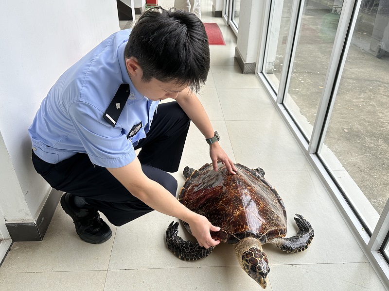 不久前,崇明公安分局经侦支队接到群众举报称:有人在网上交易疑似国家一级保护动物玳瑁标本。支队接到举报后,迅速开展调查、深入研判,后赶赴长兴岛、江苏连云港市成功抓获犯罪嫌疑人3名,查获玳瑁标本1只。