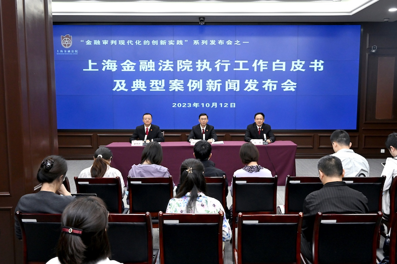 10月12日上午,上海金融法院发布《上海金融法院执行工作白皮书(2018-2023)》和《上海金融法院执行典型案例(2018-2023)》。