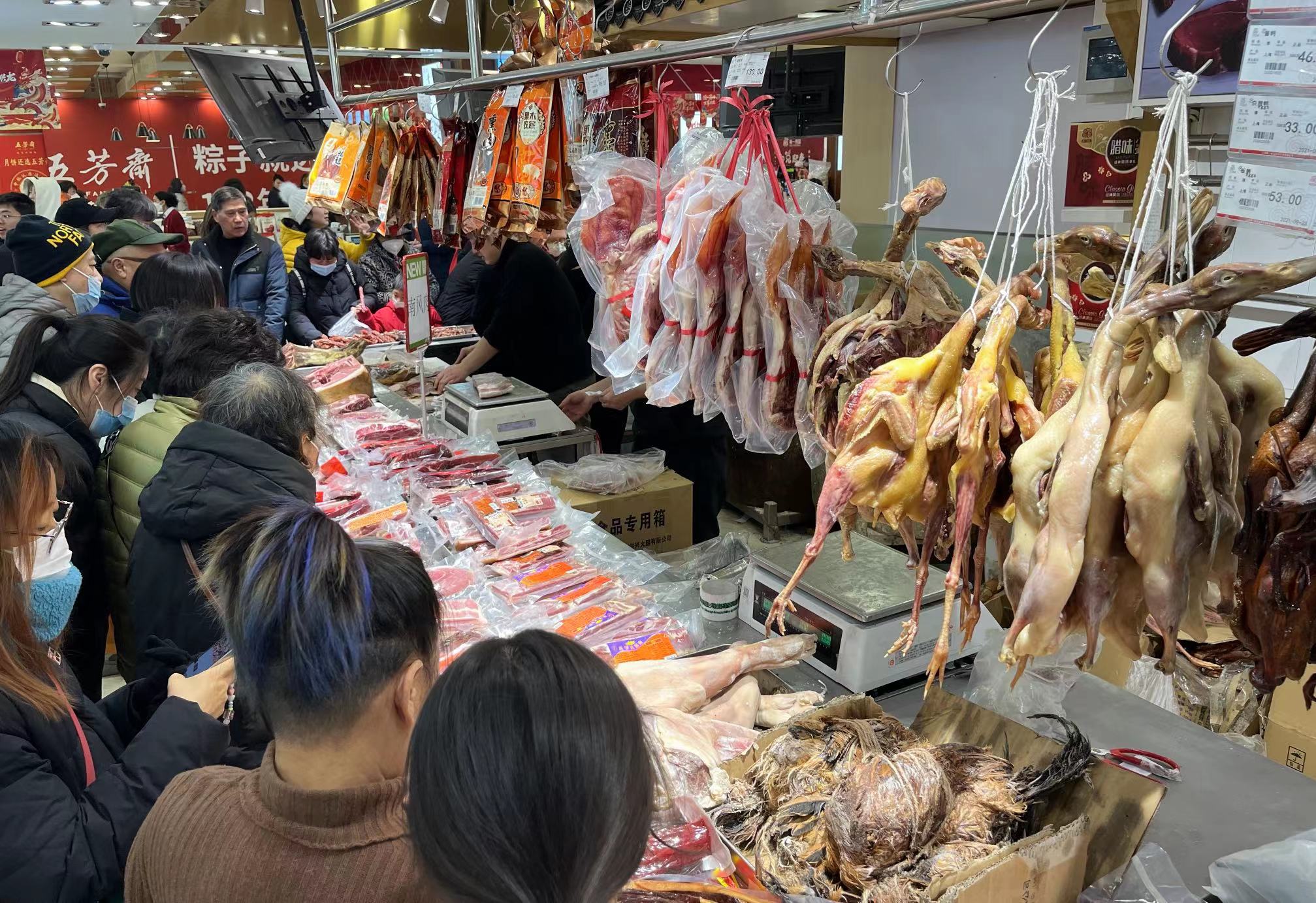 图为上海第一食品商店内的腊味受市民喜爱。劳动报记者 贡俊祺 摄影