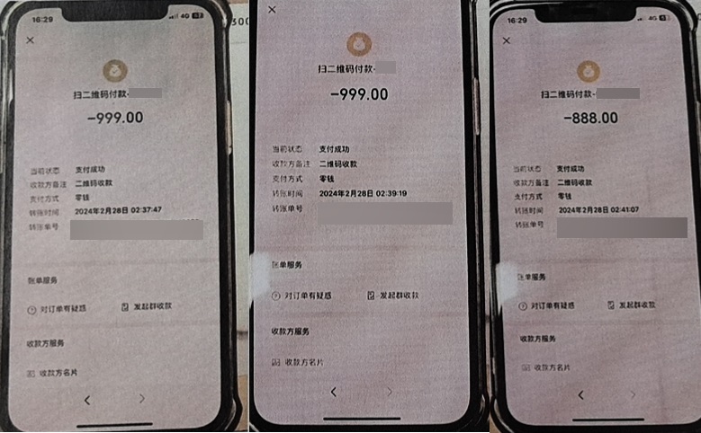 头图被害人微信里产生3笔转账记录截图。警方供图