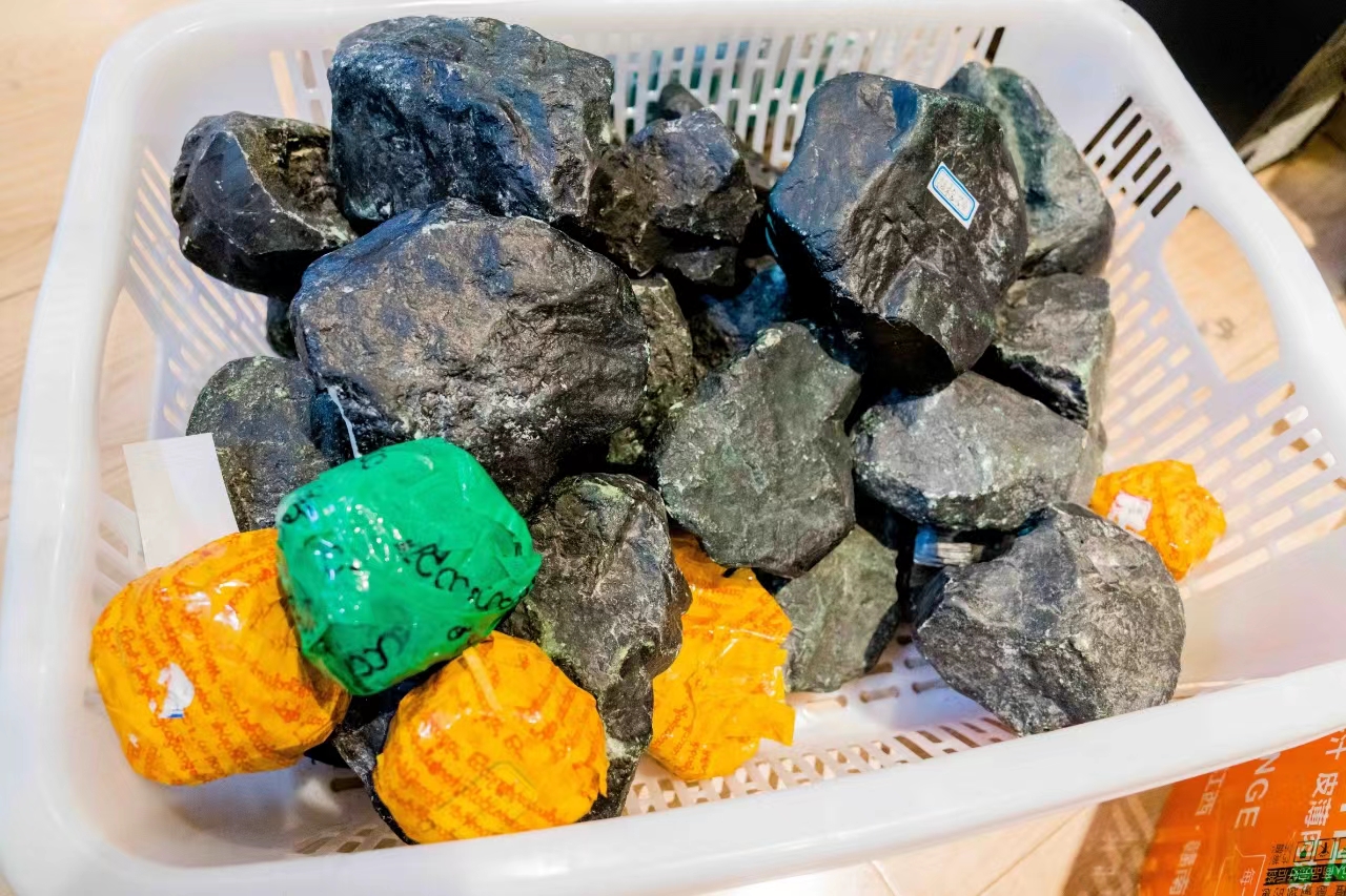 实际上,直播间使用的原石的表面和切开面都是油漆喷涂的,根据交易需要挑选相应原石出镜,从而操纵开石结果。事后重新补漆的原石又会回到直播间,真正做到了“零损耗”。
