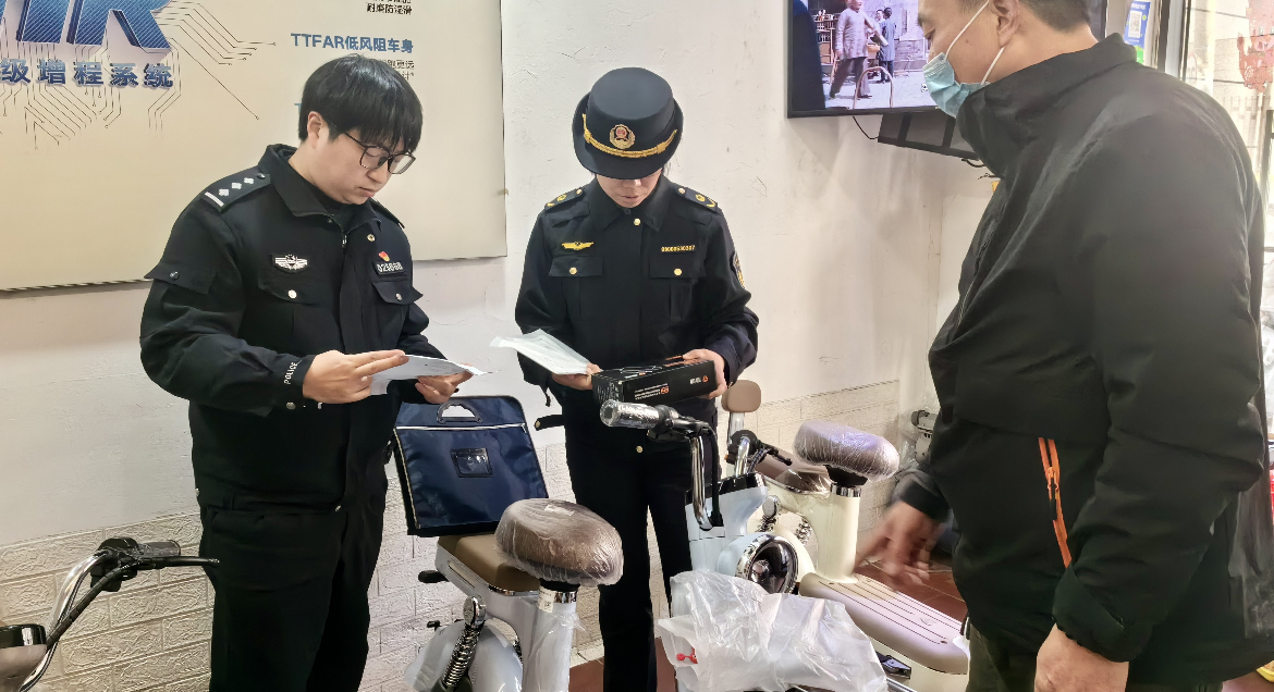 头图为长宁交警联合区市场监管对辖区电动自行车门店开展检查。警方供图
