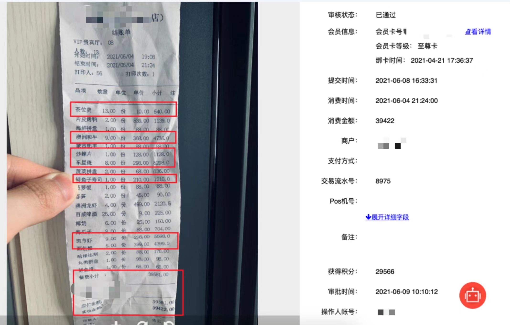 5月初,白玉路派出所接某商场负责人报警称,其在对历年停车数据进行梳理时,发现有3个会员号曾在2021年通过上传数百张“巨额”收银小票获取会员积分。这些“巨额”消费的收银小票均为商场内的餐饮店消费单,但多个小项明细计算错误,存在明显“PS”的痕迹,且买单金额与餐厅正常消费严重不匹配。接报后,警方立即开展调查取证。