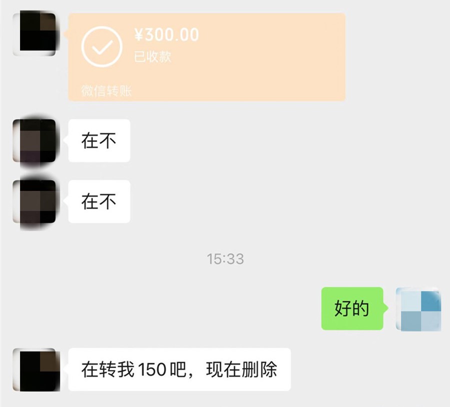 屈某向商家索要“删帖费”的聊天记录。警方供图