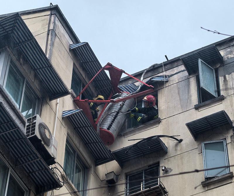 徐汇消防正在居民家中进行高空排险作业。消防供图