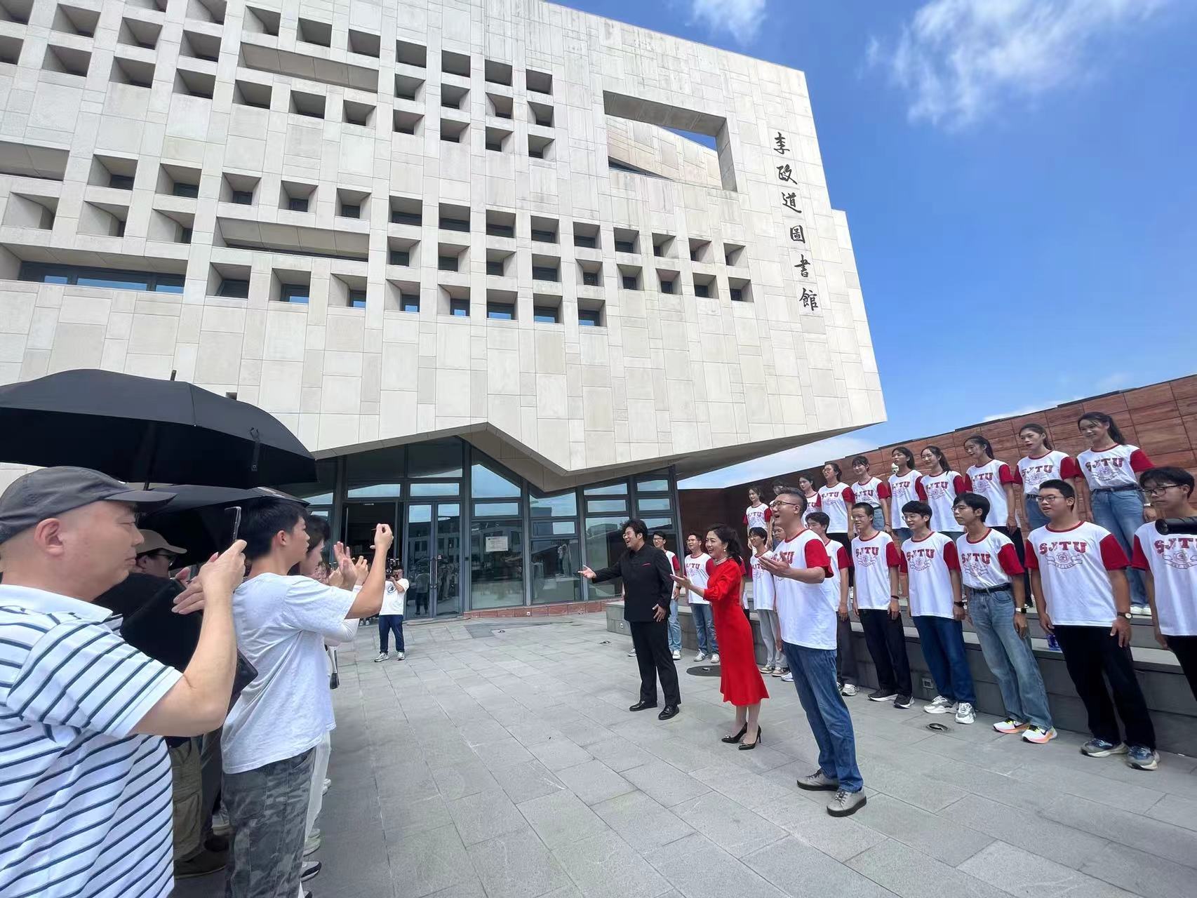 为庆祝新中国成立75周年,弘扬爱国主义精神,传承科学家精神,9月28日,“科普日·音乐快闪——喜迎新中国成立75周年华诞,科学与艺术之交响”活动在上海交通大学李政道图书馆举行。