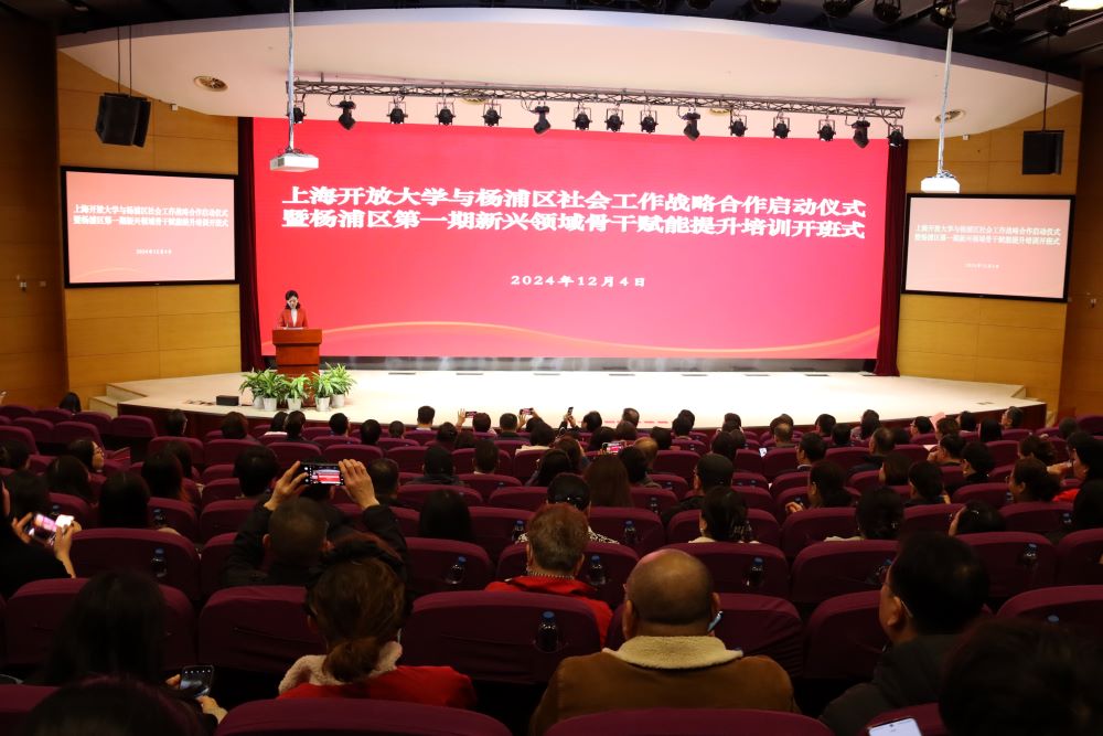 头图为上海开放大学与杨浦区社会工作战略合作启动仪式现场。校方供图