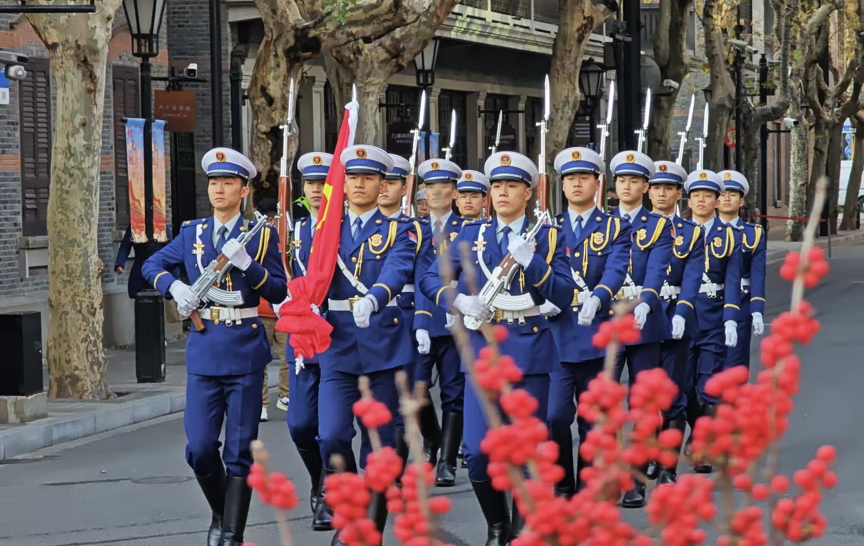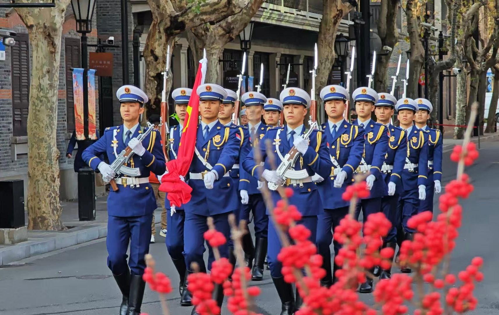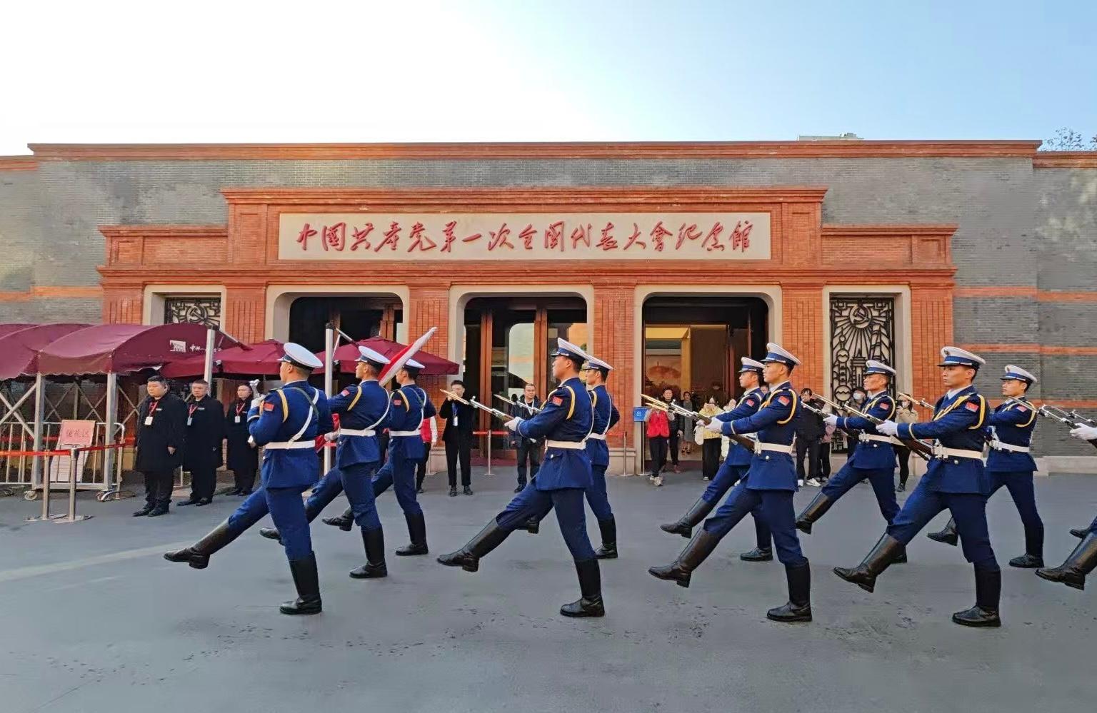 一大广场国旗护卫队从中共一大纪念馆前走过。劳动报记者贡俊祺 摄影